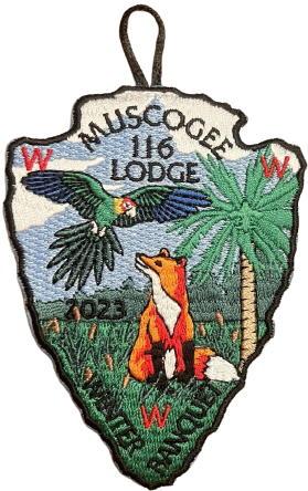 Muscogee Lodge #116 formed at the beginning of 2023 as a result of a merger of the Indian Waters and Pee Dee Area councils of South Carolina. Since a council may have no more than one OA lodge, Muscogee and Santee merged to create a new lodge, by combining membership and lodge totems, using the “Muscogee” lodge name, and the Santee lodge number, 116.